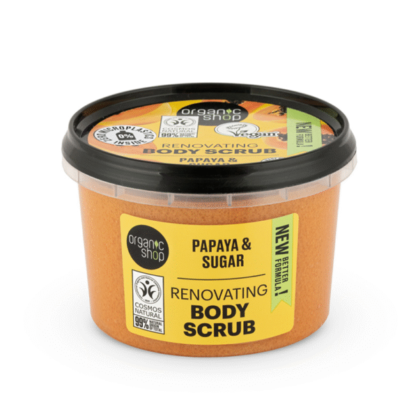 This fruity, aromatic body scrub with organic papaya extract and natural sugar sumptuously exfoliates and renews your skin, giving it smoothness, silkiness and a healthy glow.