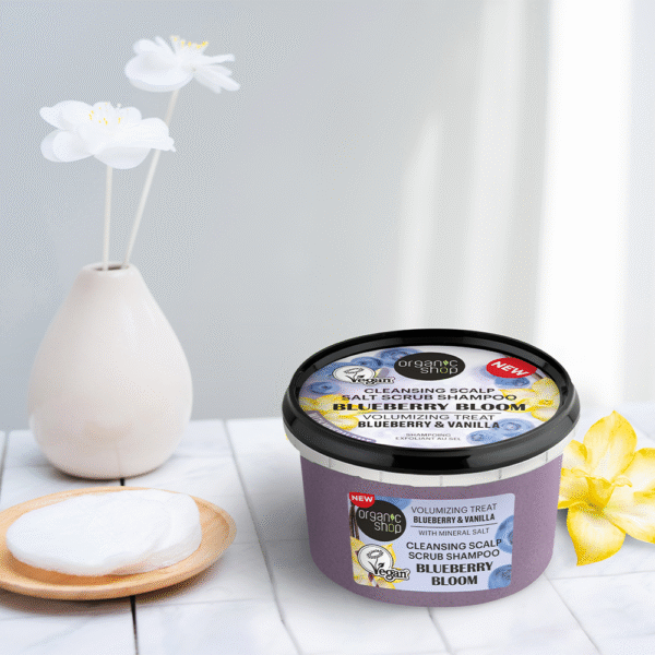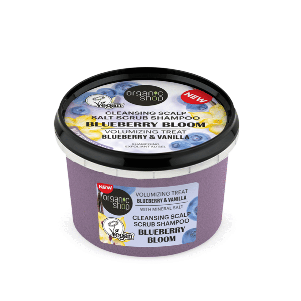 Say goodbye to frizz and tangles! Infused with natural sea salt in pair with organic blueberry and organic vanilla, our scrub purifies your scalp and cleanses hair, restoring its natural shine, volume and elasticity for healthier-looking locks. Directions: Apply a scrub-shampoo on wet hair, gently massage the scalp, then rinse thoroughly.