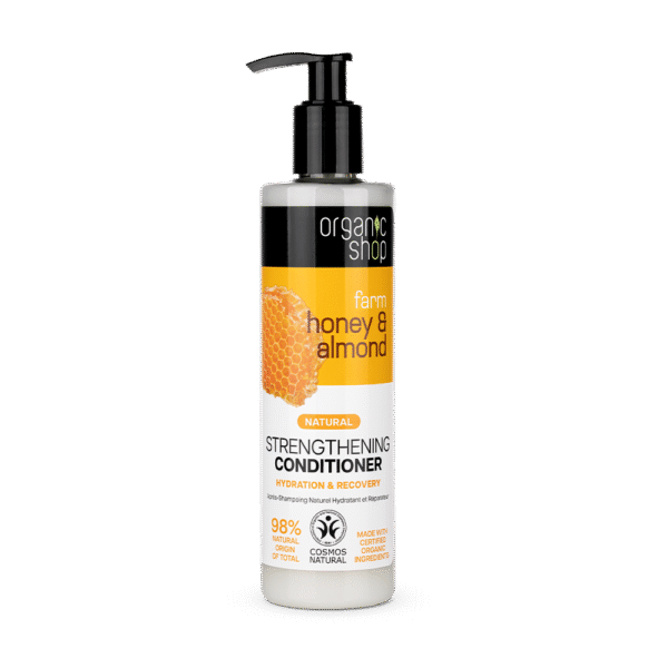 Enjoy the pleasant aroma and feel how your hair becomes noticeably healthier, stronger, and more well-groomed with Farm Honey and Almond strengthening conditioner. Honey is a natural source of vitamins and minerals. It penetrates the hair and moisturizes it at the deepest level. Almond oil is rich in vitamins A and E, which help strengthen hair and protect against harmful environmental influences.